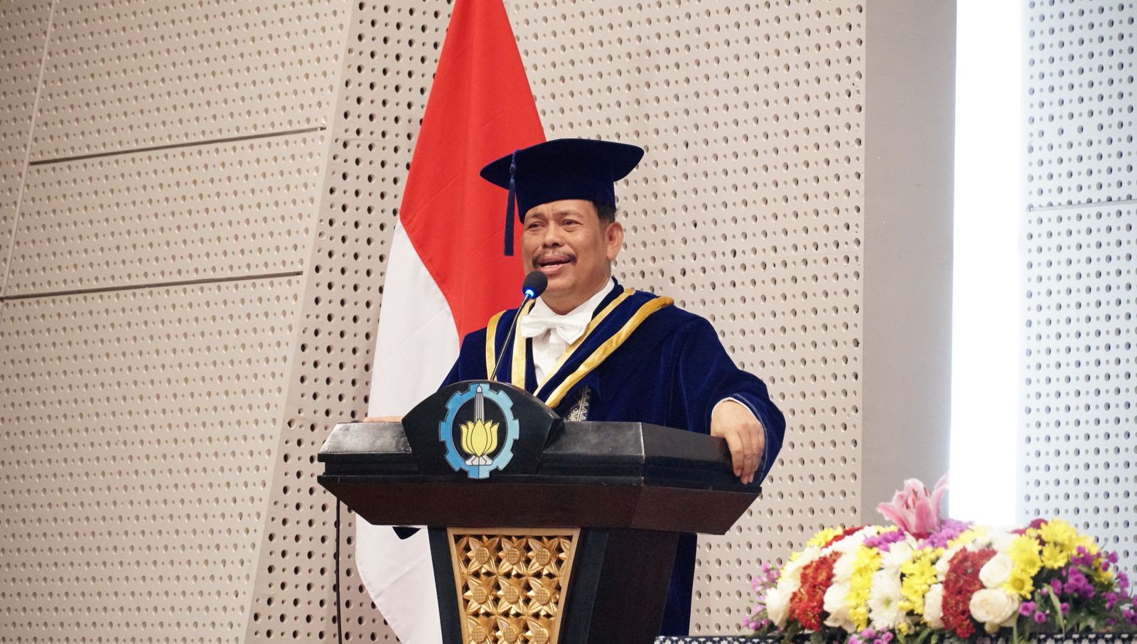 Prof Ir Bambang Pramujati ST MSc Eng PhD delivering his inaugural speech at the ITS Professors Council Open Session.