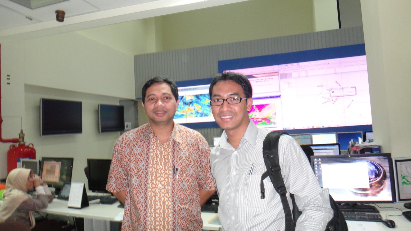 Prof Dr rer pol Heri Kuswanto MSi (right) with Dr Fachri Radjab (left) during a visit to the BMKG Jakarta Command Center