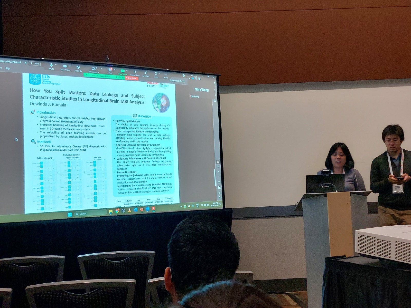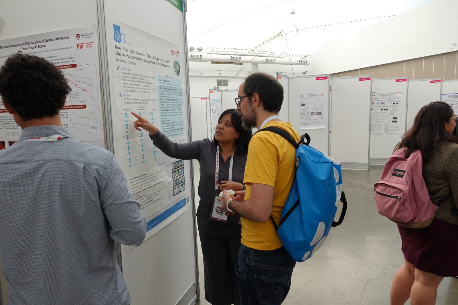 Dr Dewinda Julianensi Rumala ST (pointing) while presenting the results of her research at the MICCAI conference in Vancouver, Canada