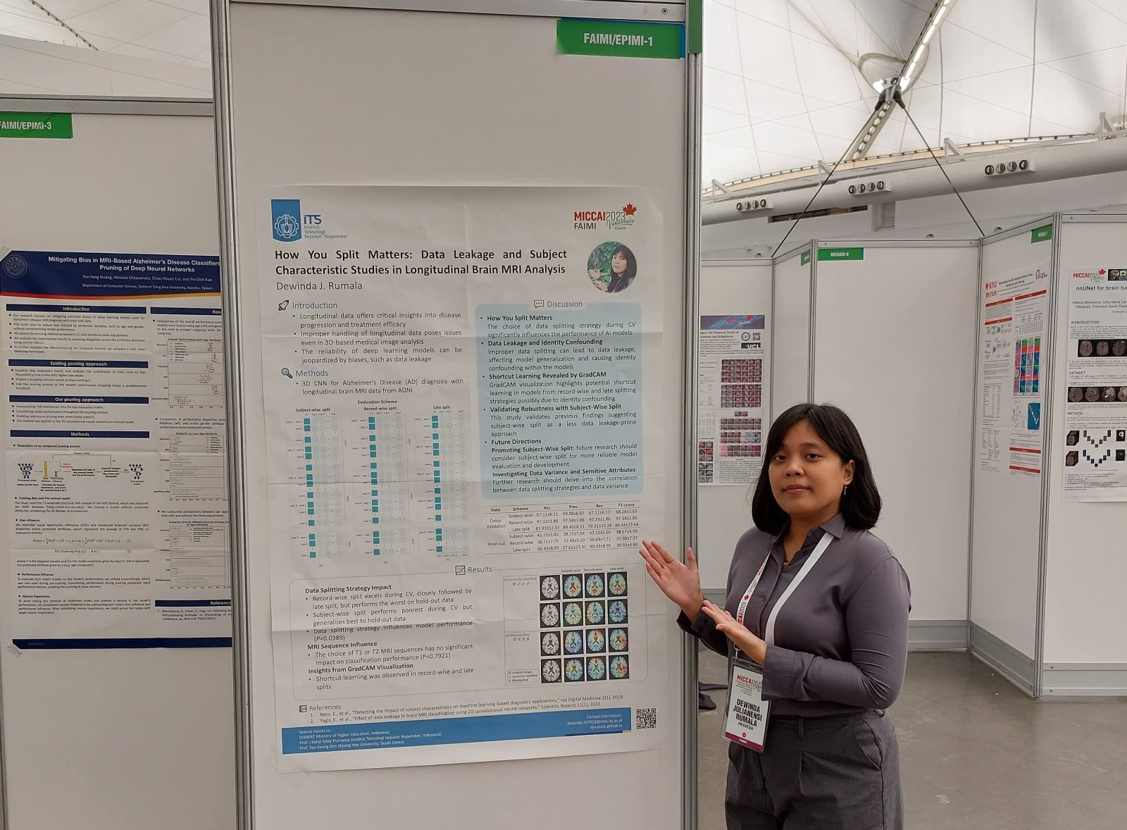 Not only recognized academically, Dewinda’s research has also been recognized globally. The results of her research have been published in three international journals and five Scopus-indexed conferences, including in Springer Q1. She also had the opportunity to attend the MICCAI Workshop in Canada, the most prestigious conference for AI in medical image analysis, and succeeded in winning the Best Poster Presentation Award at the event.