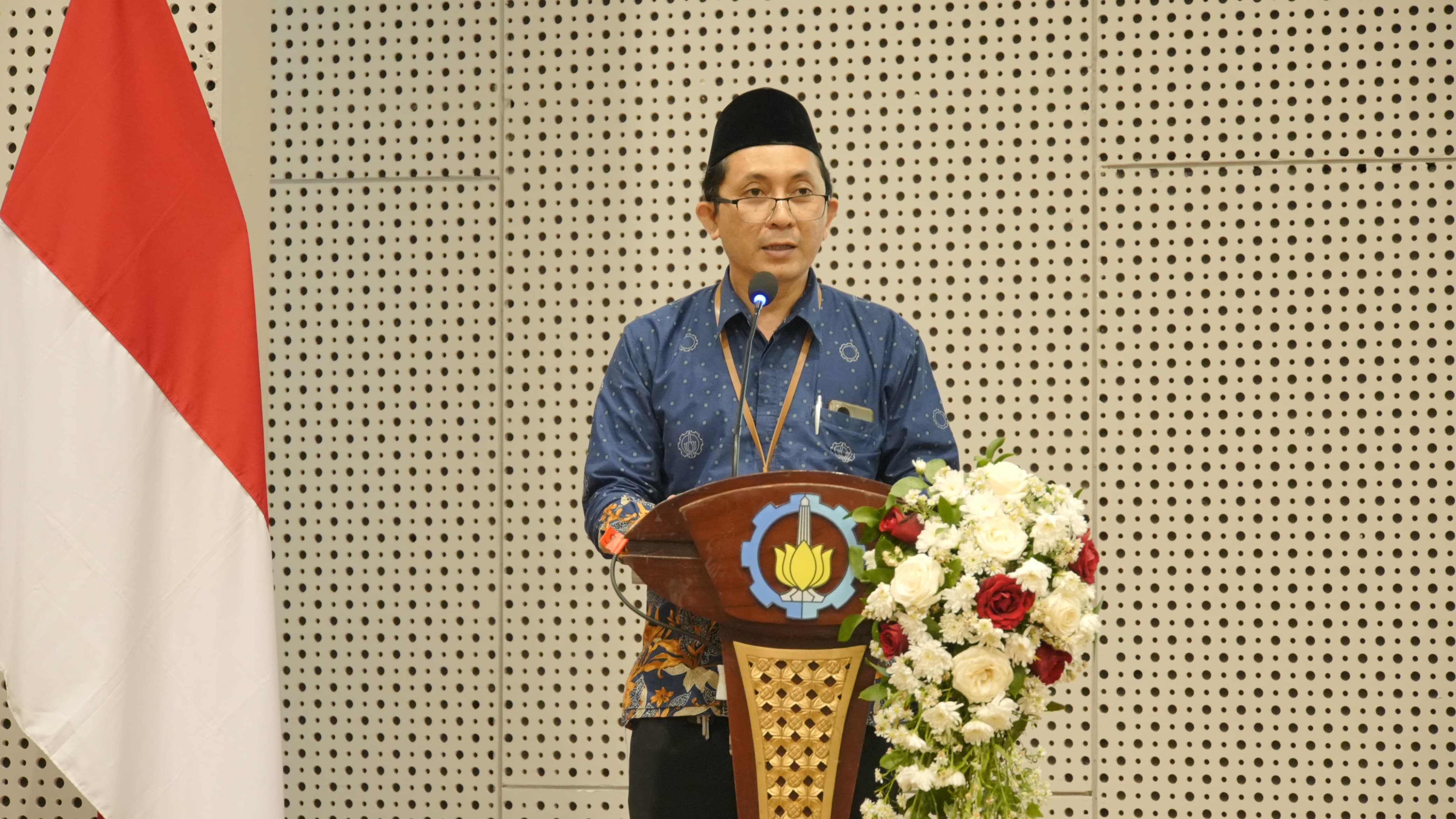 Head of the ITS Halal Study Center Prof. Setiyo Gunawan ST PhD IPM delivering a report on activities at the study center he leads