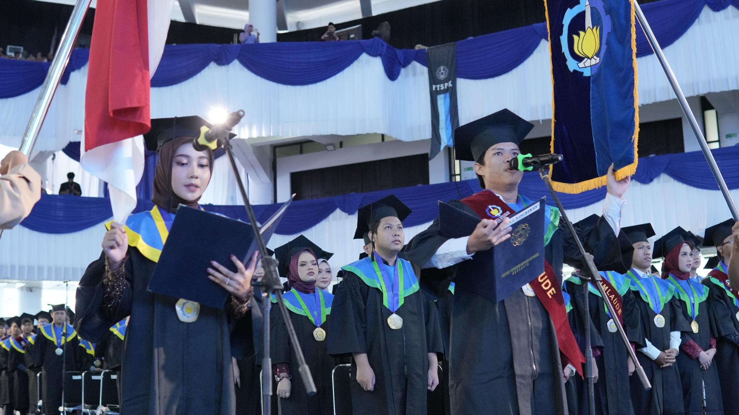 Specifically, the inaugural graduation ceremony on Saturday (September 20th) featured graduates from the Faculty of Science and Data Analytics (FSAD) from the Department of Mathematics and Statistics and graduates from the Faculty of Intelligent Electrical and Informatics Technology (FTEIC). On Sunday (September 21st), the graduation ceremony also included graduates from two other faculties: the Faculty of Science and Data Analytics (FSAD) from the Departments of Physics, Chemistry, Biology, and Actuarial Science. Graduates from all departments within the Faculty of Civil, Planning, and Geoengineering (FTSPK) also participated.