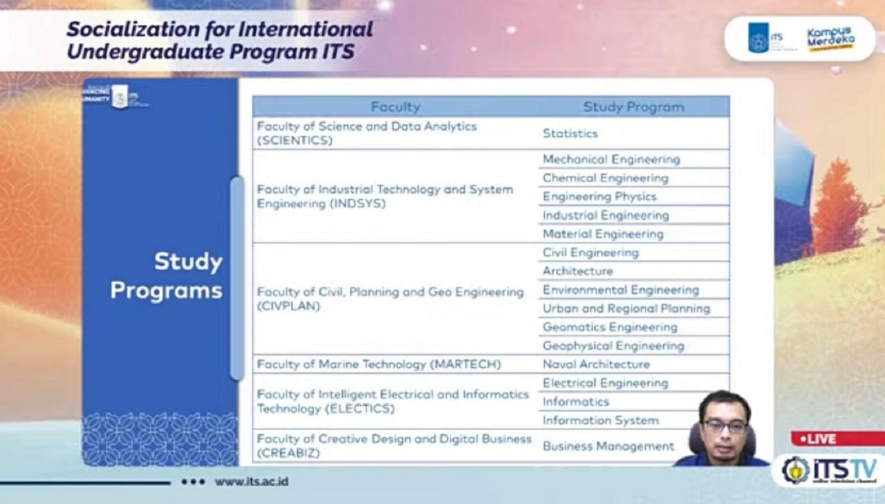 ITS Campus, ITS News – After carrying out the socialization for the National Selection for State Higher Education (SNMPTN) and the Joint Selection for State University Admission (SBMPTN), Institut Teknologi Sepuluh Nopember (ITS) again held registrational socialization. This time the socialization for the International Undergraduate Program (IUP) registration was held online, Saturday (12/1). Head of […]