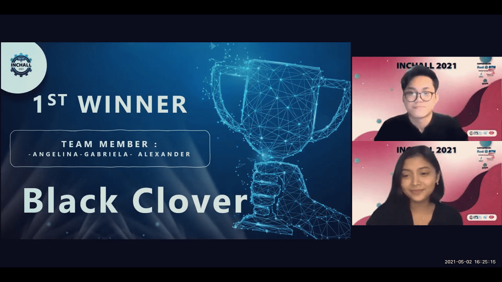 Momen Pengumuman Juara Pertama Kompetisi INCHALL 2021 secara daring, Ahad (2/5)