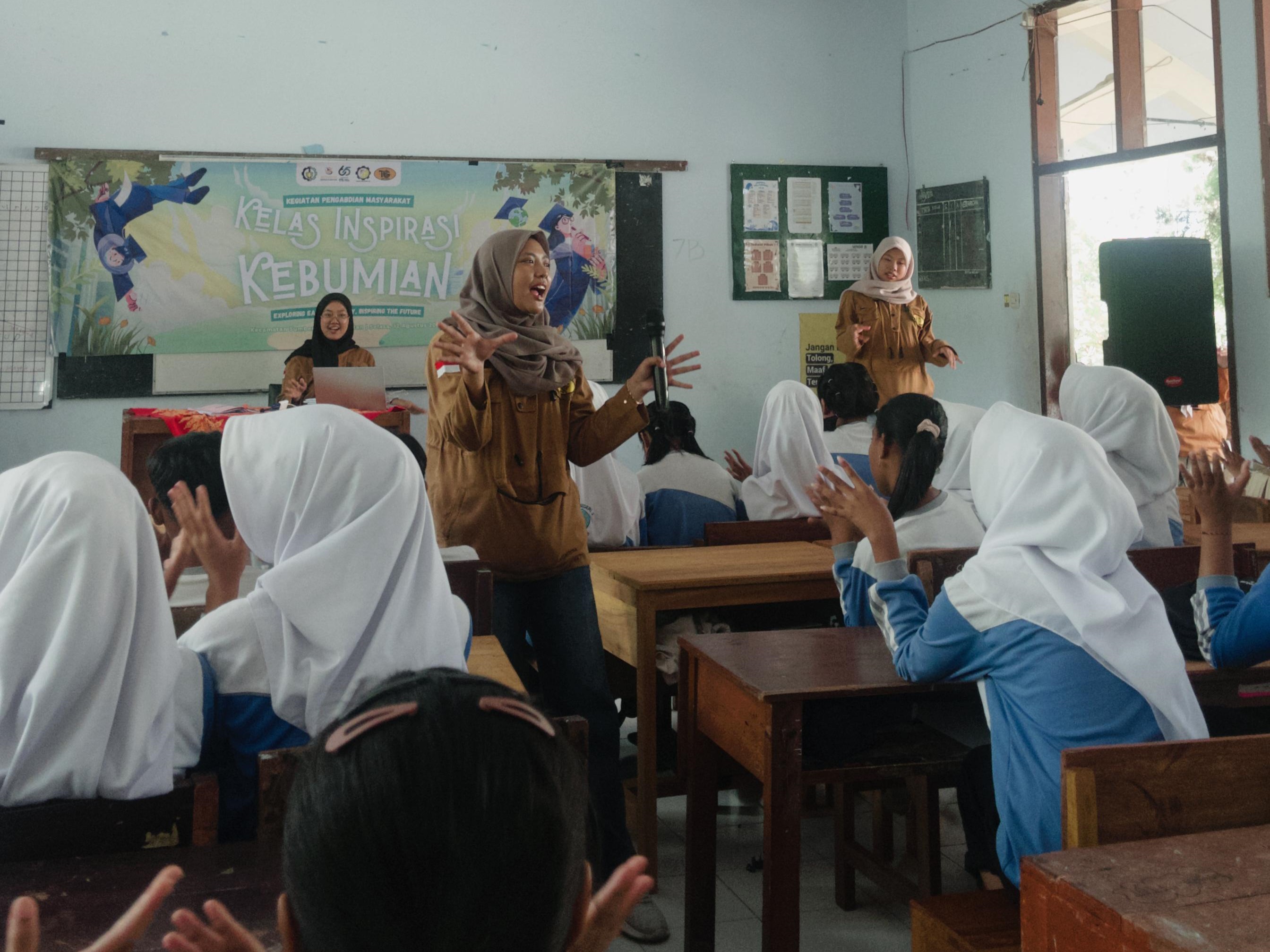 Antusiasme peserta dalam mengikuti kegiatan Kelas Inspirasi Kebumian di SMPN 2 Sumbermanjing Wetan, Kabupaten Malang