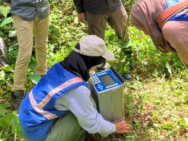 Mahasiswa Teknik Geofisika ITS saat melakukan pengukuran geofisika menggunakan metode gravitasi