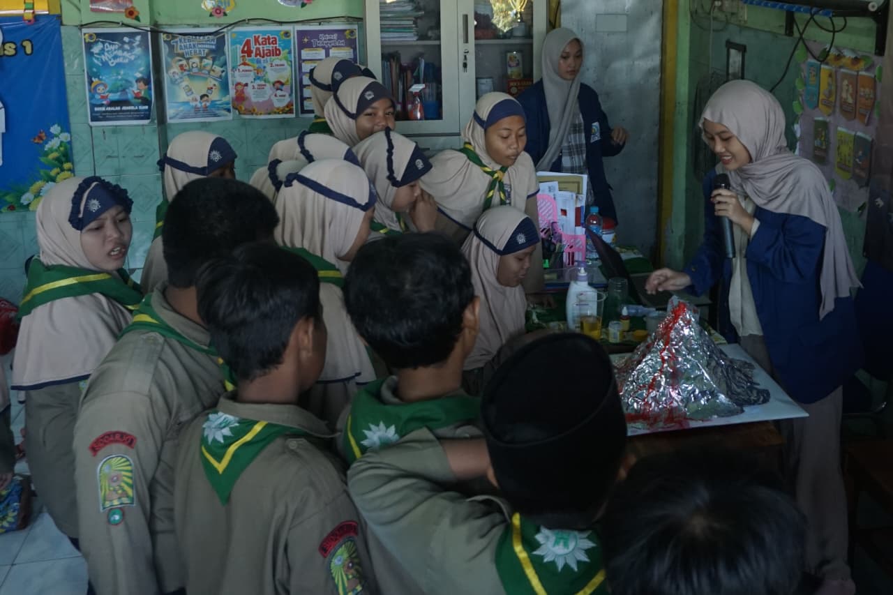 Gadis asal Surabaya itu menyebutkan, kegiatan yang berlangsung pada 11 Oktober 2025 lalu ini menghadirkan eksperimen simulasi gunung berapi dan lampu lava. Pada simulasi gunung berapi, siswa mencampurkan larutan cuka dan natrium bikarbonat atau soda kue ke dalam model gunung berapi. Reaksi dua bahan tersebut membentuk gas karbon dioksida yang mendorong cairan keluar dari wadahnya yang seolah-olah seperti letusan gunung berapi.