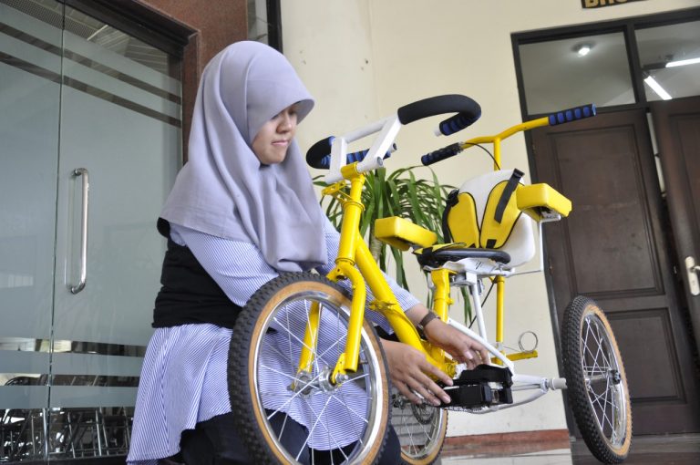 Kampus ITS, ITS News – Untuk membantu pergerakan anak dengan kebutuhan khusus, mahasiswi Departemen Desain Produk Industri (Despro) Institut Teknologi Sepuluh Nopember (ITS) Surabaya menciptakan sebuah sepeda terapi. Sepeda
