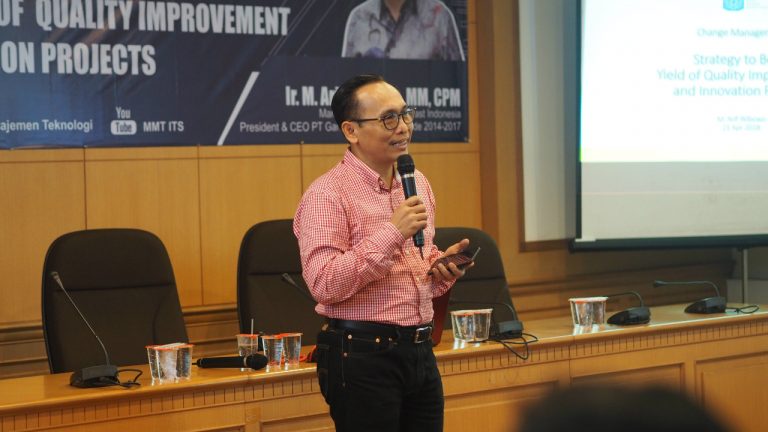 Kampus ITS, ITS News – Manajemen perubahan merupakan salah satu cara dan strategi untuk meningkatkan hasil dari kualitas dan proyek inovasi. Ir M Arif Wibowo MM CPM, Managing Director