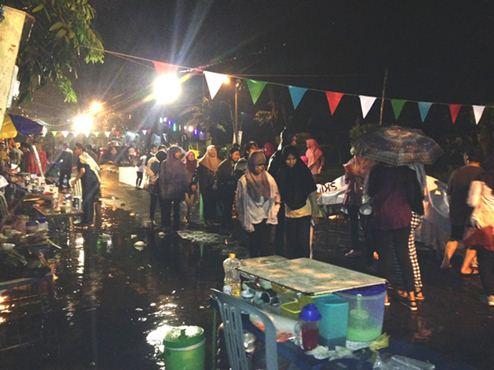 Tak seperti biasanya, Jalan Taman Alumni Institut Teknologi Sepuluh Nopember (ITS) dipadati ratusan stan dagang Sabtu, (25/3). Meski sempat ditunda beberapa saat karena hujan deras, Pasar Malam