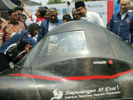 Institut Teknologi Sepuluh Nopember (ITS) Surabaya mengadakan launching Mobil Sapuangin XI EVO 1 di Frontage Road Dinas Perhubungan Jatim, Minggu (12/3). Dalam helatan tersebut, Wakil Gubernur Jawa Timur (Jatim),
