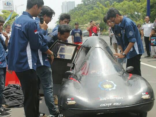 Tim Sapuangin Institut Teknologi Sepuluh Nopember (ITS) Surabaya melahirkan mobil baru Sapuangin XI EVO 1, Minggu (12/3). Mobil hemat energi generasi 11 ini merupakan hasil riset tim Sapuangin sejak