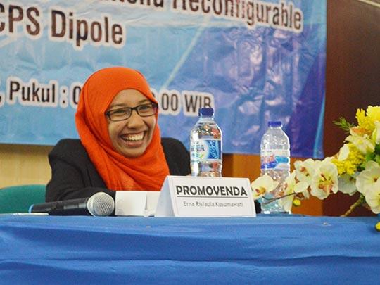 Tekun meneliti antena mikrostrip mengantarkan Erna Risfaula Kusumawati meraih gelar doktor di Departemen Fisika Institut Teknologi Sepuluh Nopember (ITS) pada Senin (27/1). Wanita yang juga meraih gelar magister di
