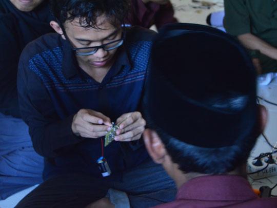 Memainkan rebana adalah hal biasa bagi santri. Namun, apa jadinya bila santri dituntut untuk memainkan robot? Tak sekedar memainkan, mereka juga diajarkan tahap-tahap dalam merancang robot tersebut. Adalah mahasiswa