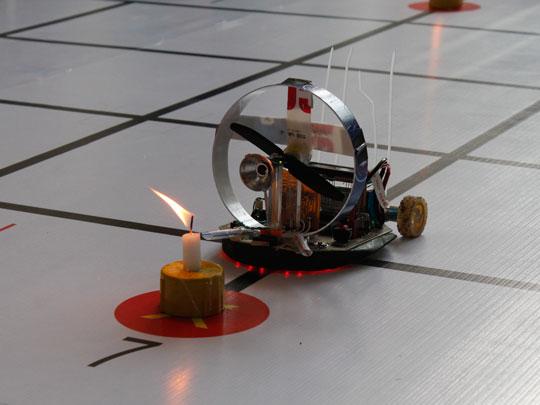Puluhan robot berbasis line tracer pagi ini, Sabtu (26/11) dikerahkan untuk memadamkan api yang menjalar di Plasa Dokter Angka ITS. Tak perlu panik, sebab api yang dimaksud hanya sebatas