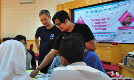 Teori bisnis dalam membangun suatu perusahaan, lazimnya adalah mendapatkan untung sebesar-besarnya dengan modal sekecil-kecilnya. Belajar dari perusahaan Go-Jek, Sabtu (26/11). Acara bertajuk Business Forum, Technology for Business Development Strategy