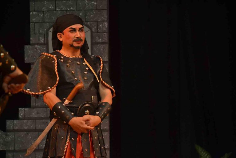 Bertajuk Menyatukan Kembali Nusantara, Cak Joni dengan ikat kepala hitamnya bersiap untuk menyerang Majapahit bersama segenap pasukan. Dengan mimik wajah serius, panglima perang yang dilakoni oleh Rektor ITS, Prof Ir
