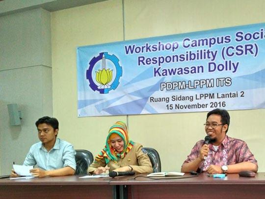 ITS berupaya menggandeng 28 kampus di Surabaya untuk program Campus Social Responsibility (CSR) di eks lokalisasi Dolly. Hal ini dibahas dalam workshop bertajuk Workshop Campus Social Responsibility (CSR), Selasa(15/11).