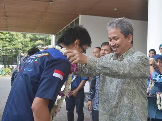 Tim Spektronics ITS kembali menginjakkan kaki di Surabaya, Jumat (30/9). Dengan bangga, tim chem-e-car, mobil dengan bahan bakar reaksi kimia ini pulang membawa dua gelar juara dalam kompetisi internasional