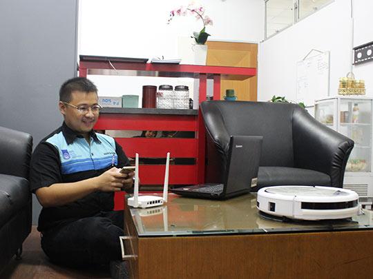 Teknologi robot semakin menginvasi kehidupan, khususnya untuk membantu keperluan sehari-hari. Salah satunya adalah robot pembersih rumah. Lebih-lebih, dalam pengoperasiannya mampu dilakukan dengan jarak jauh sekalipun sedang tidak berada di