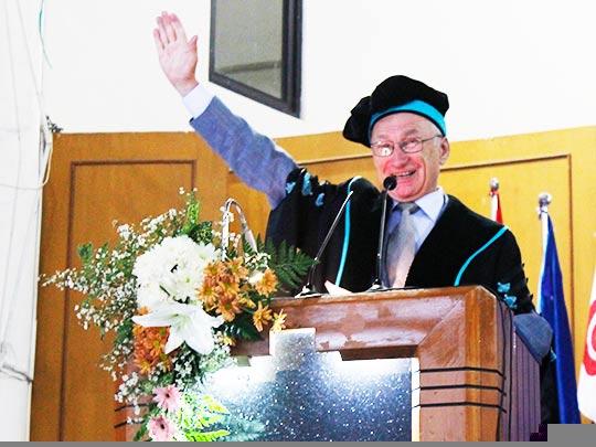 Kali kedua, Prof Dr Ir Willy Verstraete, Dosen Ghent University, kembali menyambangi Indonesia. Pada kunjungan kedua ini, ia memberikan motivasi dan wejangan pada pengukuhan mahasiswa baru ITS, Selasa (23/8).