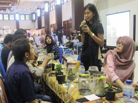 Spasial menghadirkan loka karya seni pembuatan terrarium, Sabtu (13/3). Terrarium merupakan wadah yang terbuat dari kaca atau plastik transparan berisi tanaman, yang diperuntukkan bagi beragam kebutuhan, seperti dekorasi.