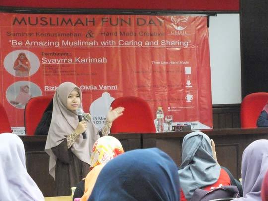 Menjadi muslimah mandiri yang berprofesi sebagai entrepreneur menjadi topik yang dibahas Rizky Hadi Oktia Venni dalam acara Muslimah Fun Day (MFD) yang digelar di Ruang BB 203 Jurusan D3