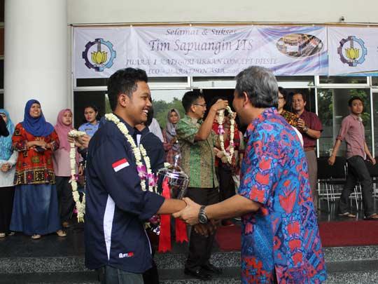 Bandara Juanda menjadi saksi bisu kemeriahan puluhan mahasiswa Institut Teknologi Sepuluh Nopember (ITS) dalam rangka penyambutan rekan mereka yang baru saja pulang berstatus juara dari Filipina. Lantas rekan mereka
