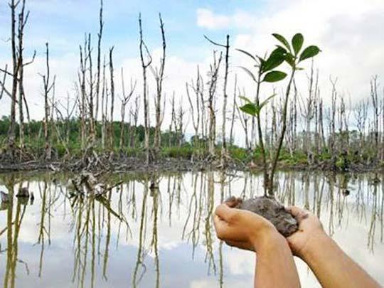 Himpunan Mahasiswa Biologi ITS (Himabits) melakukan gerakan penyelamatan tanaman bakau di Wonorejo, Minggu, (28/2). Dengan mengusung tema Peduli Lingkungan, acara ini memilih bakau sebagai tanaman yang memiliki stok karbon