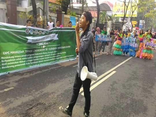 ''Kami mahasiswa Teknik Lingkungan Se-Surabaya menyatakan bahwa mendukung secara penuh program Indonesia Bebas Sampah 2020". Begitulah bait deklarasi memperingati Hari Peduli Sampah Nasional (HPSN) 2016 yang dilakukan mahasiswa Jurusan