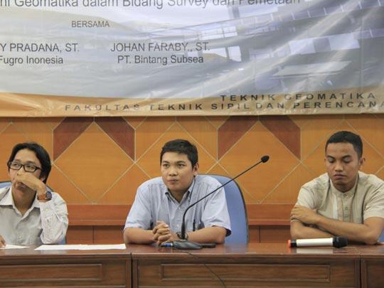 Kondisi minyak dunia yang sedang lesu tidak menyurutkan minat orang untuk bisa bekerja di bidang offshore (pengeboran lepas pantai, red). Khususnya bagi mahasiswa Jurusan Teknik Geomatika ITS.