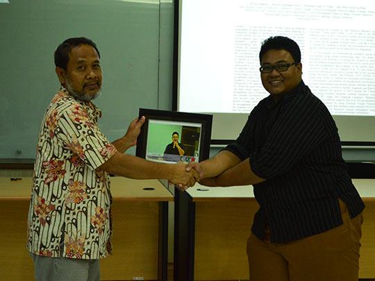 Sempat ditolak karena kemampuan bahasa Inggris yang kurang, Wahyu Sasongko membagi pengalamannya dalam berburu beasiswa, Jumat (12/2). Pada kuliah tamu yang bertajuk Lulusan D3 Instrumentasi dan Metrologi Go Internasional,