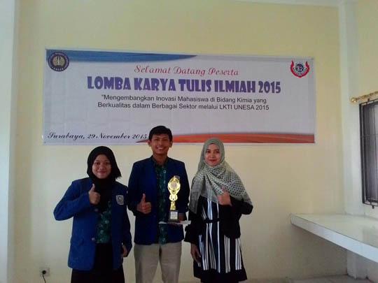 Berkat inovasi dalam mengatasi permasalahan distribusi buah, tiga mahasiswa Jurusan Kimia ITS sukses meraih prestasi tingkat nasional. Mereka adalah Novicha Imaninsa, Fitria Wahyu Kurniawati dan Lutfi Andre Yahya, peraih