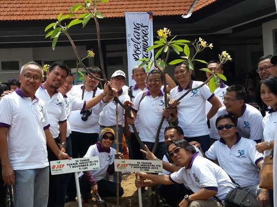 Suasana Gedung Teknik Industri ramai penuh dengan alumni, Sabtu (7/11). Berbaju putih lengkap dengan identitas angkatan yang tertempel di dada kiri, mereka berbondong-bondong datang untuk melakukan tanam pohon. Acara