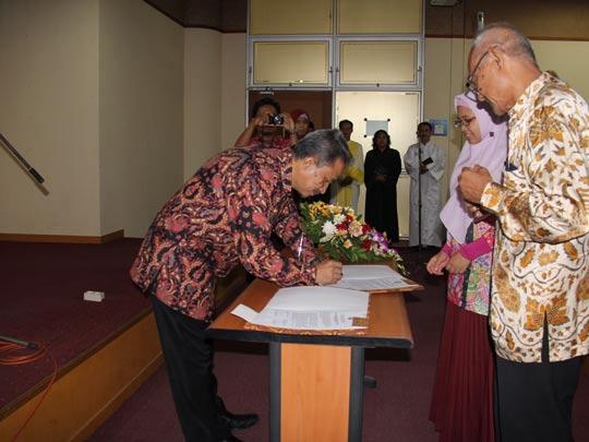 Suasana khidmat terasa di Ruang Sidang Rektorat, Rabu (21/10). Pada momen itu, sebanyak 69 anggota Senat Akademik ITS periode 2015-2020 resmi dilantik oleh Rektor ITS, Prof Ir Joni Hermana