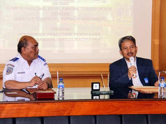 Komite Nasional Keselamatan Transportasi (KNKT) kembali mempercayai Institut Teknologi Sepuluh Nopember (ITS) sebagai partner dalam bidang investigasi kecelakaan. Kerjasama yang tertulis dalam Momerandum of Understanding (MoU) pada Kamis (8/10)