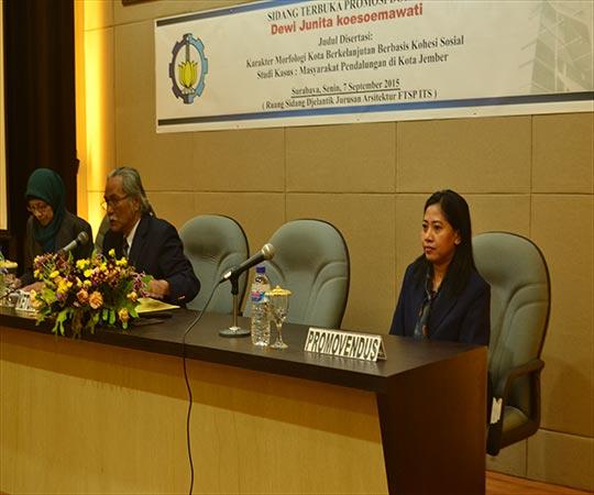 Impian Dr Dewi Junita Koesoemawati ST MT menyandang gelar doktor akhirnya terwujud. Wanita yang akrab dipanggil Dewi ini dinyatakan lulus dari jenjang S3 Jurusan Arsitektur ITS pada Senin (7/9).