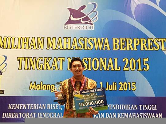 Torehan prestasi tidak henti-hentinya digeruskan oleh Aditya Brahmana, seorang mahasiswa Jurusan Teknik Informatika ITS. Setelah berhasil melaju menjadi perwakilan ITS pada ajang Mahasiswa Berprestasi (Mawapres) Tingkat Nasional 2015, ia