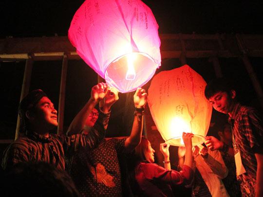 Ada yang berbeda di langit kecamatan Wonosalam, Jombang malam ini. Malam yang biasanya gelap seketika bertabur cahaya warna-warni. Ternyata, cahaya tersebut berasal dari lentera kertas yang diterbangkan oleh para