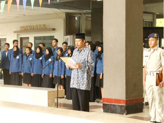Cuaca hujan tak jadi penghalang bagi sivitas akademika ITS peringati Hari Pendidikan Nasional (Hardiknas), Sabtu (2/5). Upacara yang berlangsung khidmat di Plasa Dr Angka ini bak menghangat atas sambutan
