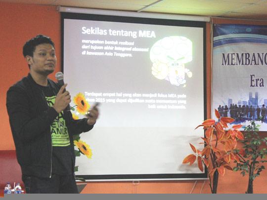 Dalam seminar bertajuk Be An Excellent Entrepreneur : Era Masyarakat Ekonomi Asean, Mahendra Ega Higuitta ST berbagi pengalamannya merintis bisnis usaha sego jamur. Seminar yang dilakukan pada Senin (28/4)
