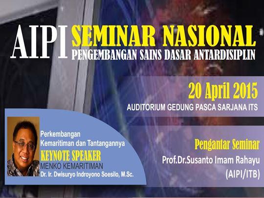Akademi Ilmu Pengetahuan Indonesia (AIPI) bekerja sama dengan Fakultas Matematika dan Ilmu Pengetahuan Alam (FMIPA) ITS menggelar Seminar Nasional Pengembangan Sains Dasar Antar Disiplin. Seminar tersebut akan dilaksanakan Senin