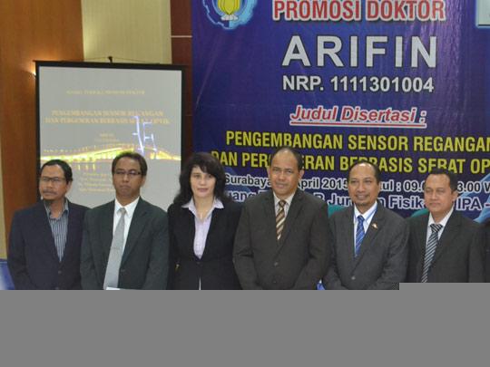 Memulai penelitian di Jurusan Fisika ITS sejak 2011 silam, mengantarkan Arifin kepada sidang doktoralnya pada Senin (6/4) di Gedung Teater B. Dengan mengangkat disertasi yang berjudul Pengembangan Sensor Regangan