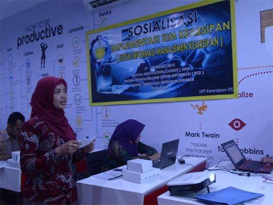 Unit Pelaksana Teknis (UPT) Kearsipan ITS dan Badan Teknologi dan Sistem Informasi (BTSI) ITS bekerja sama menggelar sosialisasi implementasi Sistem Informasi Manajemen (SIM) Kearsipan, Rabu (18/3). Bertempat di Digital