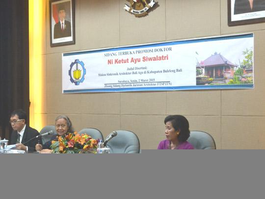 Penelitian terhadap gaya arsitektur Bali Aga mengantar Ni Ketut Ayu Siwalatri mendapat gelar doktor dengan predikat sangat memuaskan, Senin (2/3). Hasil penelitiannya tersebut nantinya dapat digunakan sebagai rujukan