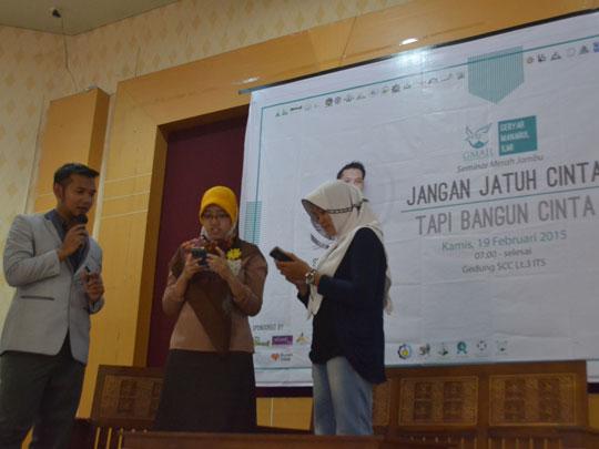 Membahas seputar cinta memang menarik diantara kaula muda. Tak ayal, Jamaah Masjid Manarul Ilmi (JMMI) ITS menggelar Seminar Merah Jambu, Kamis (19/2). Dengan mengangkat tema Jangan Jatuh Cinta tapi