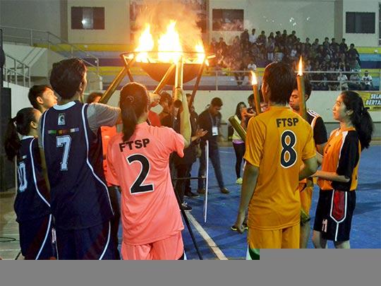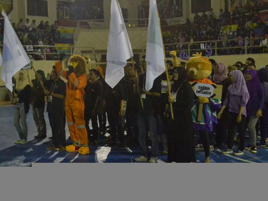 Sorak-sorai supporter kian menggelegar kala teriakan dukungan tim kesayangan terus membuncah saat dihelatnya Pembukaan Olimpiade FTSP 2015, Jumat (20/2). Tak ayal, suasana Gor Pertamina ITS pun kian semarak menyambut