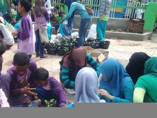 Sempitnya lahan bukanlah sebuah hambatan untuk bertanam. Pakem itulah yang ingin ditanamkan oleh Paguyuban Karya Salemba Empat (KSE) ITS kepada siswa MI Al-Mustofa, Kelurahan Tambak Deres Kenjeran, Kecamatan Bulak. Melalui kegiatan