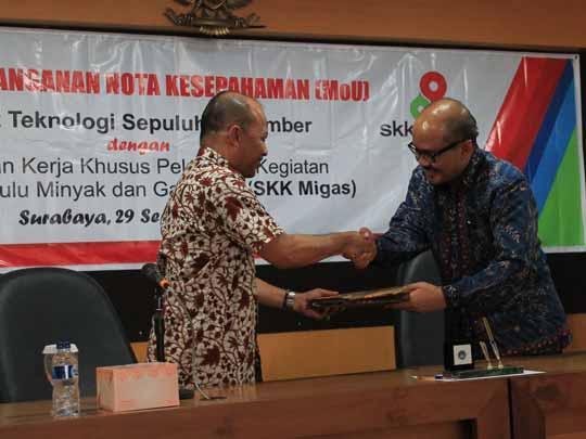 ITS melakukan penandatanganan Memorandum of Understanding (MoU) dengan Satuan Kerja Khusus Pelaksana Kegiatan Usaha Hulu Minyak dan Gas Bumi (SKK Migas) pada Senin, (29/9). Kerjasama dalam bidang pendidikan, penelitian