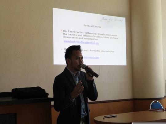 Deutsche Gesellschaft fur Internationale Zusammenarbeit (GIZ) memperkenalkan programnya di ITS, Kamis (18/9). Bernama Make it in Germany, program ini merupakan bentuk inisiatif Kementerian Ekonomi dan Energi Jerman dalam memenuhi